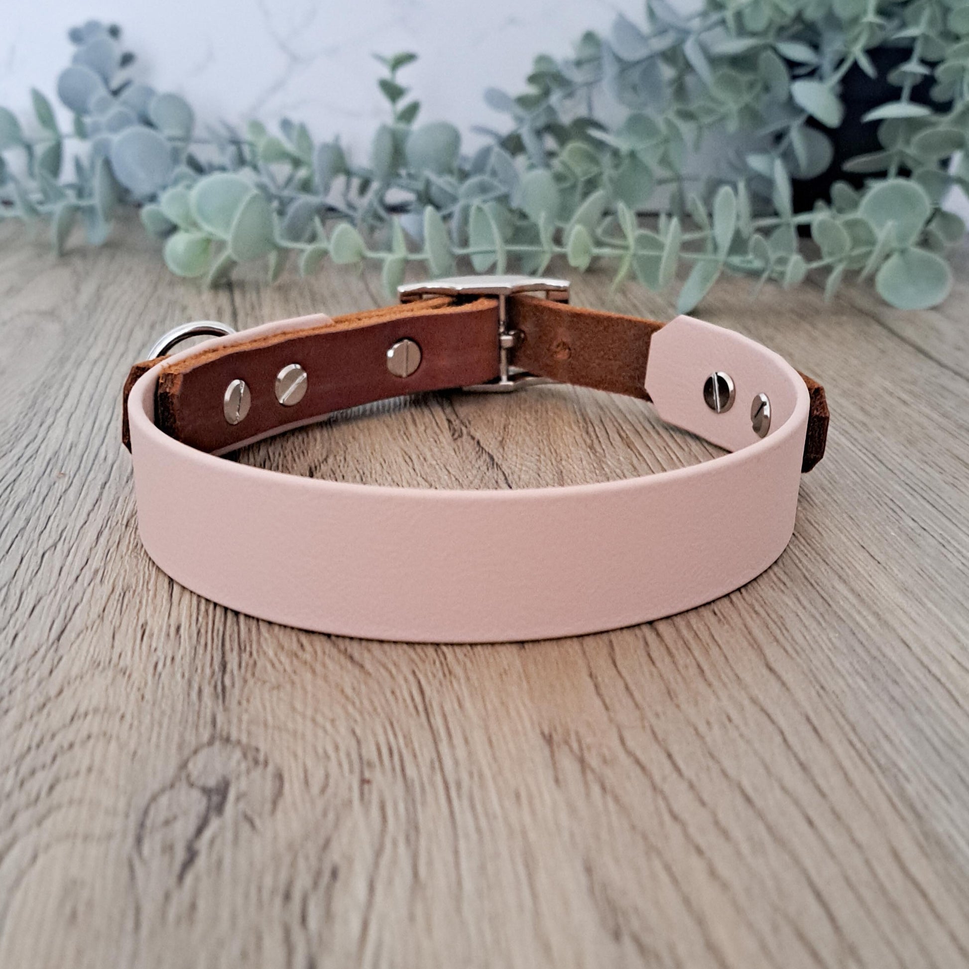 Das Halsband besteht aus Fettleder und Biothane. Das Halsband in in den Breiten 25mm und 38mm erhältlich.